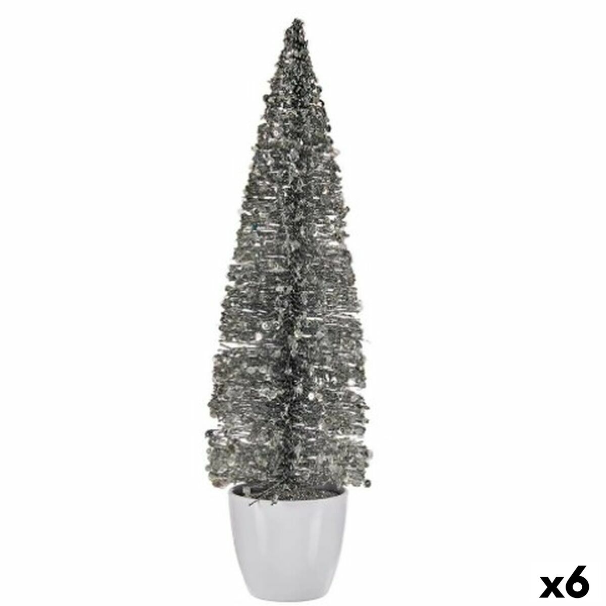 Figură Decorativă Pom de Crăciun Argintiu Plastic 10 x 38 x 10 cm (6 Unități)