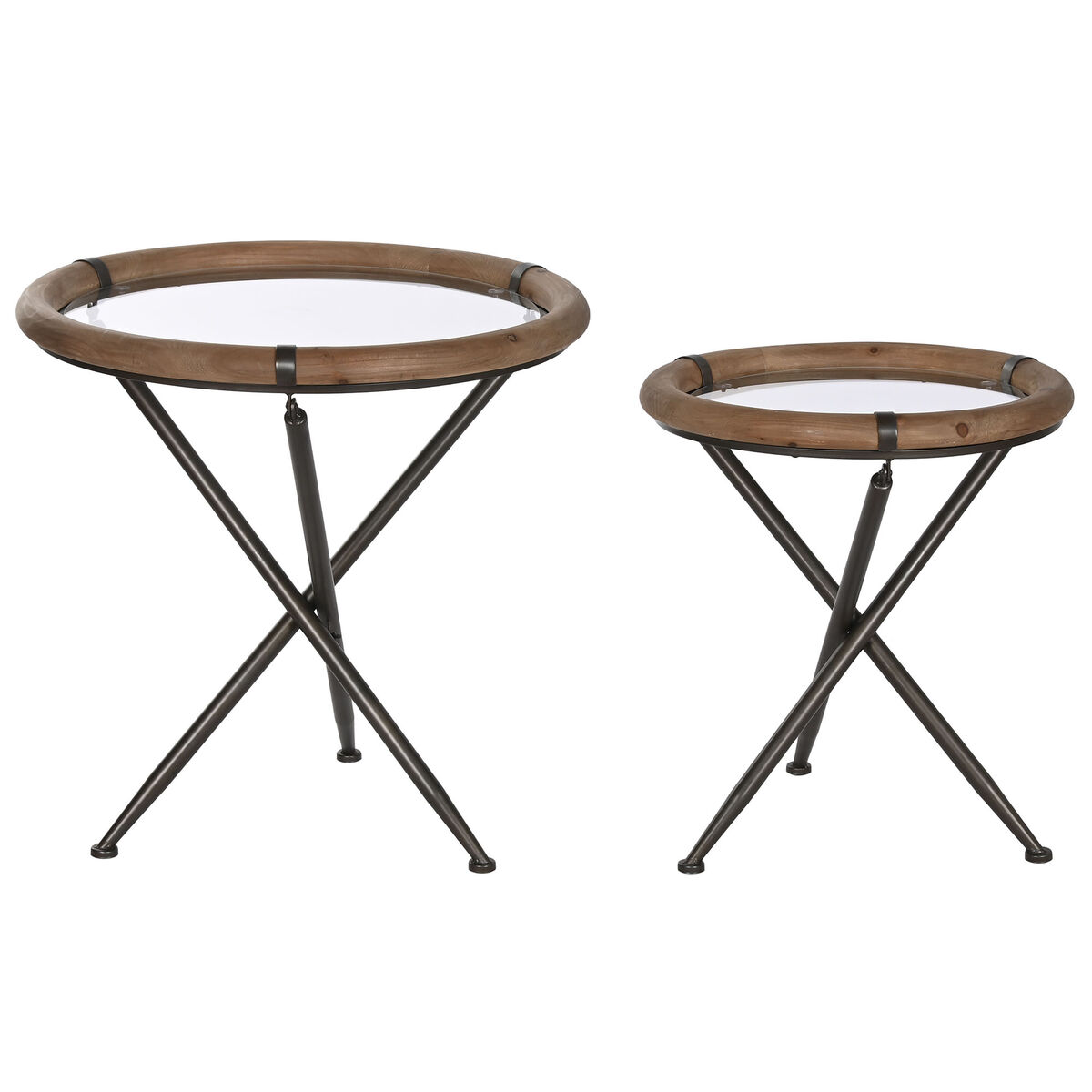 Set de 2 mese Home ESPRIT Negru Natural Geam Brad 65 x 65 x 66 cm